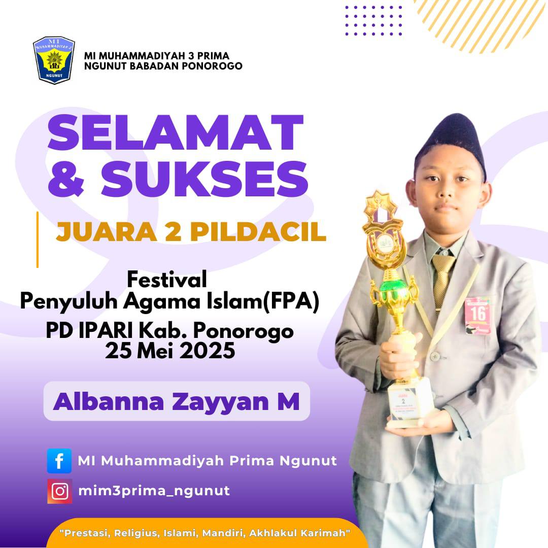 Pada Sabtu, 15 November 2025, MIM 3 Prima berhasil meraih berbagai penghargaan dalam Lomba Seni Semarak Milad Muhammadiyah ke-113 tingkat SD/MI se-Kabupaten Ponorogo. Para siswa…